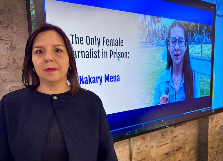 Minst 20 journalister er fengslet i Venezuela. Den eneste kvinnen blant dem er Nakary Mena, forteller eksiljournalisten og programlederen Andreína Flores. Flores er i Oslo i forbindelse med utdelingen av Nobels Fredspris til venezuelanske Maria Corina Machado.