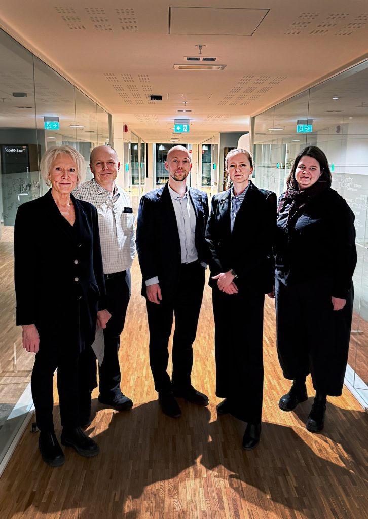 Norsk Journalistlags forhandlingsutvalg som møtte NHO: Elin Nykaas (forhandlingsleder), Lars Døvle Larssen, Mads Backer-Owe, Margrethe Håland Solheim og Hanna Haug Røset .
